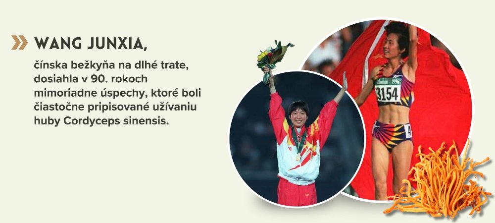Cordyceps získal svetovú pozornosť v roku 1993, keď čínské ženské bežkyne na olympiádě dosáhly rekordy na 1500 m, 3000 ma 10 000 m. Ich dopingové výsledky však byly čisté. Trenér připisoval jejich úspěch zejména díky užívání Cordycepsu před každým tréningom. Od té doby se mu dostalo více pozornosti aj ve vědeckých studiích.