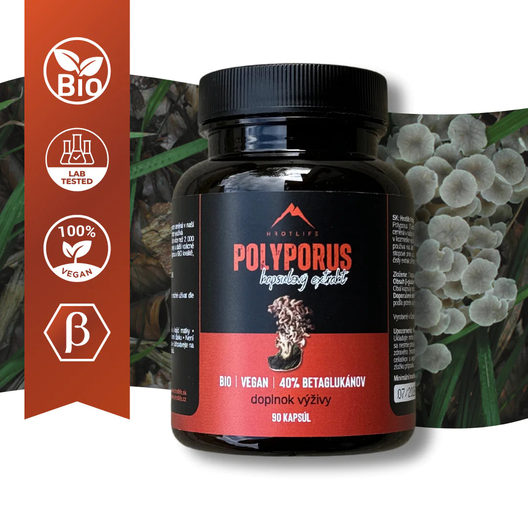 Hrot Polyporus až 40% betaglukanov, co radí mezi najlepšie extrakty. -