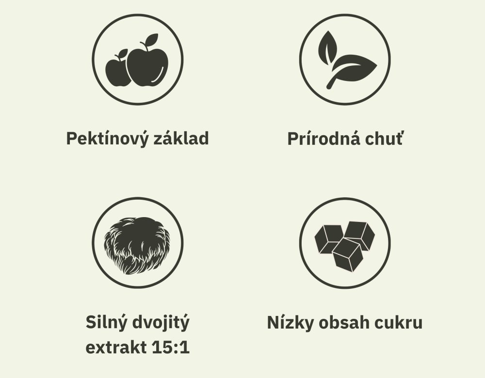 - Silný organický extrakt: Tento 15:1 extrakt z Lion's Mane huby obsahuje silnú dávku účinných látok, čo znamená, že v dvoch gummies dostanete rovnaký účinok ako z hrsti čerstvej huby – a to bez typickej hubovej chuti!